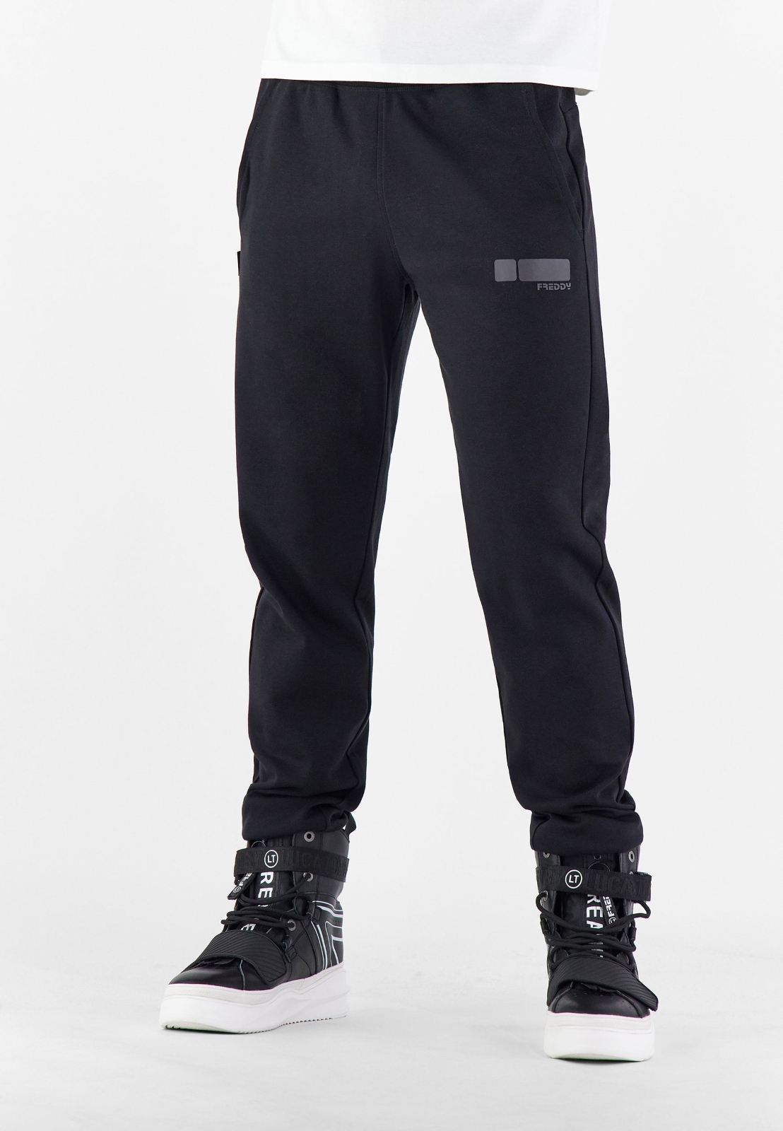 コットンジャージのスポーツパンツは、トーンカラーとマットホワイトの光沢のあるFREDDY SPORT BOXレタリングを備えたマットな縦のバンドで脚の下部に装飾されています。 ドローストリング付きの調節可能なリブ編みのウエスト、内側のフロントポケット、リブ編みの袖口が付いたボトム、レギュラーフィットです。 サイドに配置されたFREDDYノーロゴは、スタイルの詳細を完成させます。 生地のシールと自然な柔らかさを優先するデザインのおかげで、動きの振幅を必要とするスポーツやダイナミックな自由時間に理想的なパンツです。